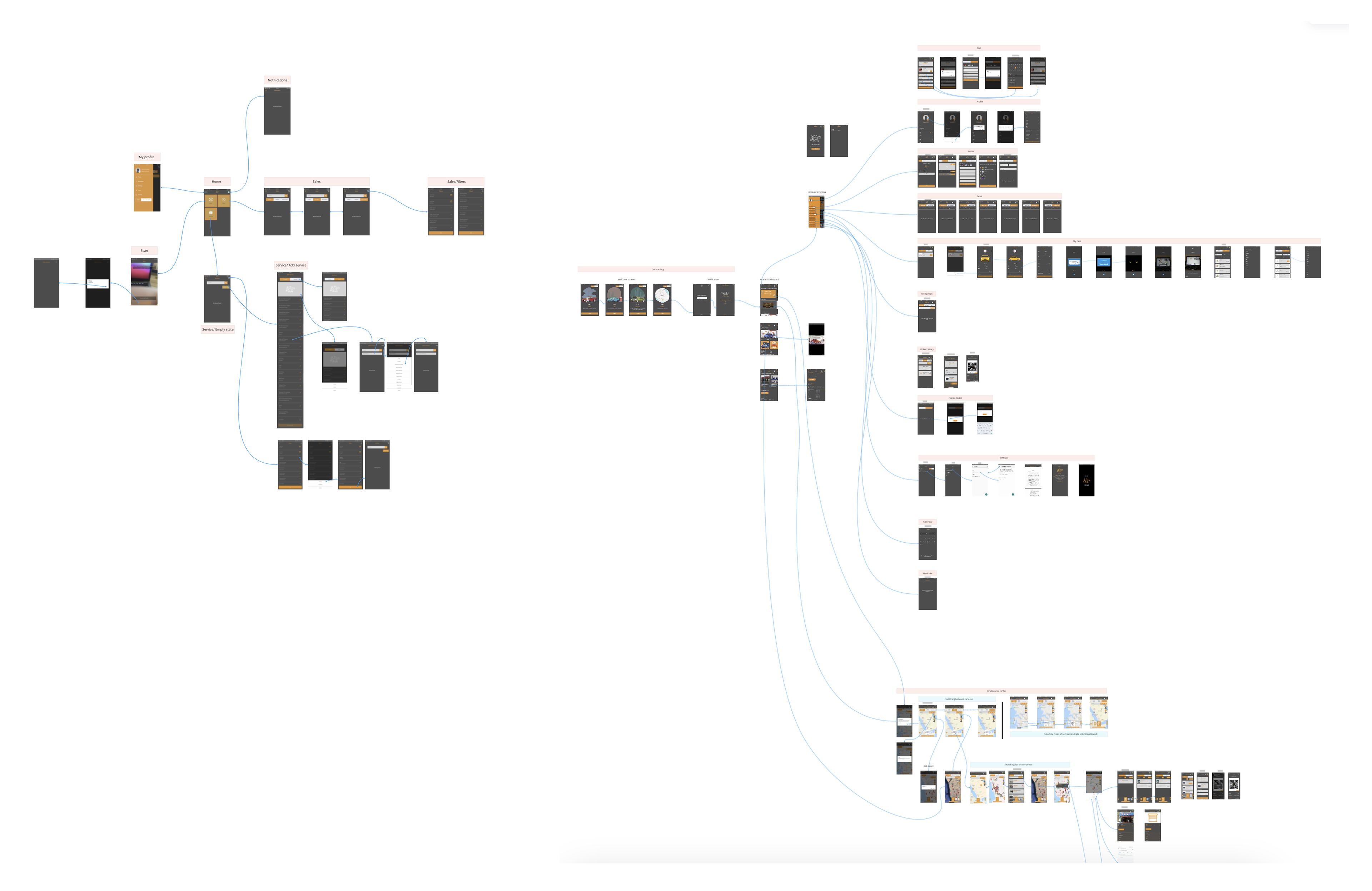 To understand the current applications of CarHub, we’ve gone through the mapping of two apps in FigJam. It helped us to get a great idea about the current navigation and deep-level features.